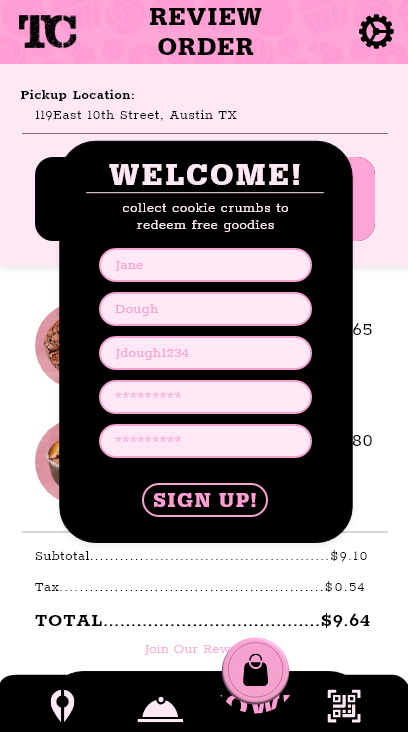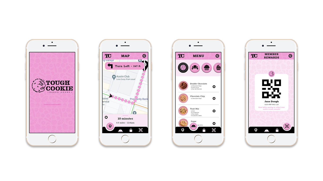 Tough Cookie is a mobile bakery truck that sells criminally delicious baked goods made by rehabilitated convicts. Former inmates gain valued workplace skills that helpthem to gain meaningful employment and lower their chances of recidivism. This app allows users to track the location of the truck, place pickup orders, and collect reward points to use on future purchases.